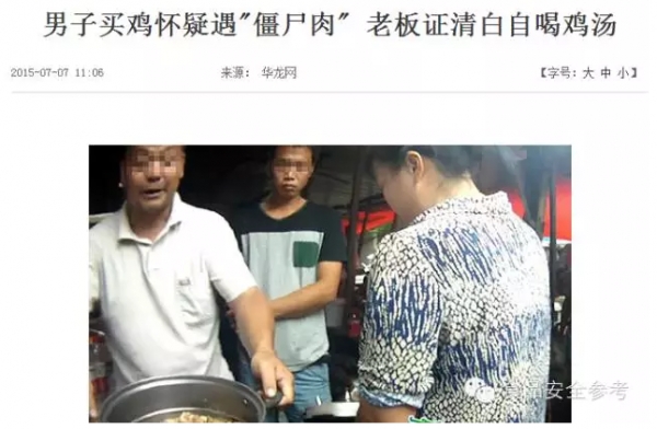 消费者也吓得不轻??!有媒体报道,某男子买鸡怀疑遇到“僵尸肉”,老板为证清白自己喝下鸡汤。