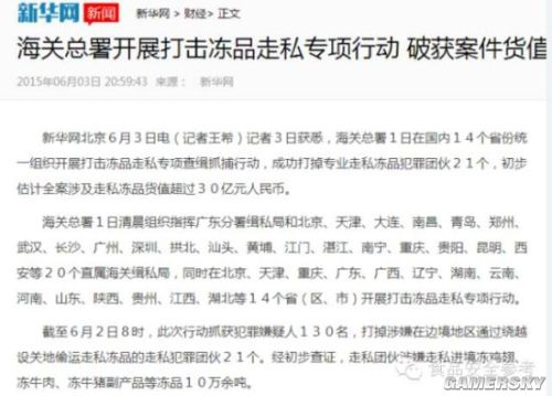 从6月1号开始,海关总署开展了一项打击冻品走私专项行动……(2015年7月10日《食品安全参考》)