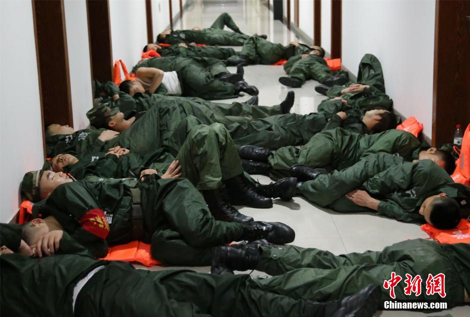 原标题:救灾过后武警官兵躺睡过道 成台风天“最美睡姿”