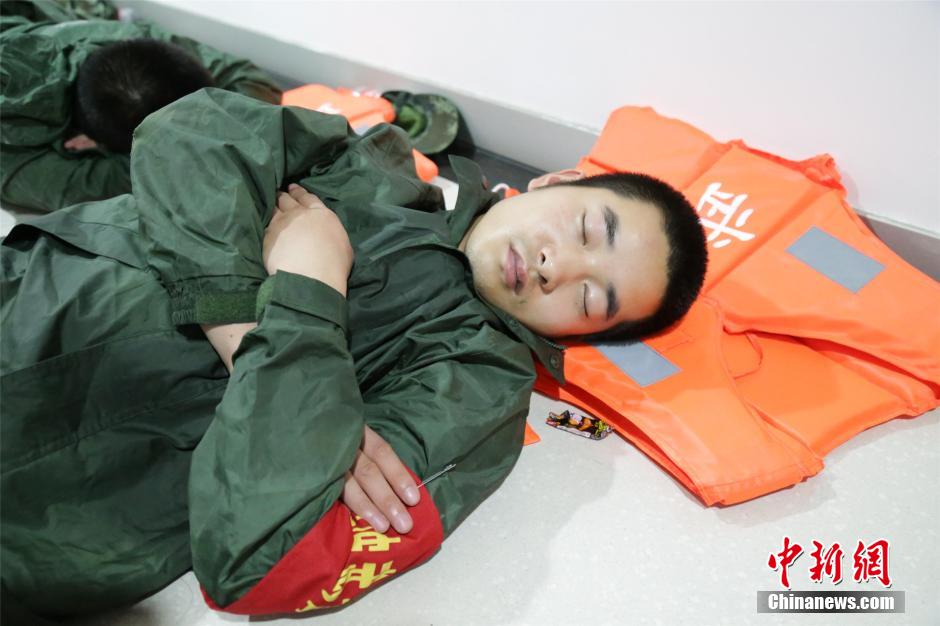 救灾过后武警官兵躺睡过道 成台风天“最美睡姿”