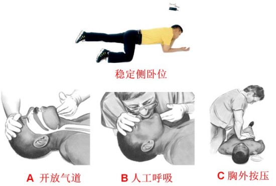 2. 昏迷(呼叫无反应),有呼吸有脉搏:呼叫120,清理口鼻异物,稳定侧卧位,等待救援人员。密切观察呼吸脉搏情况,必要时心肺复苏。