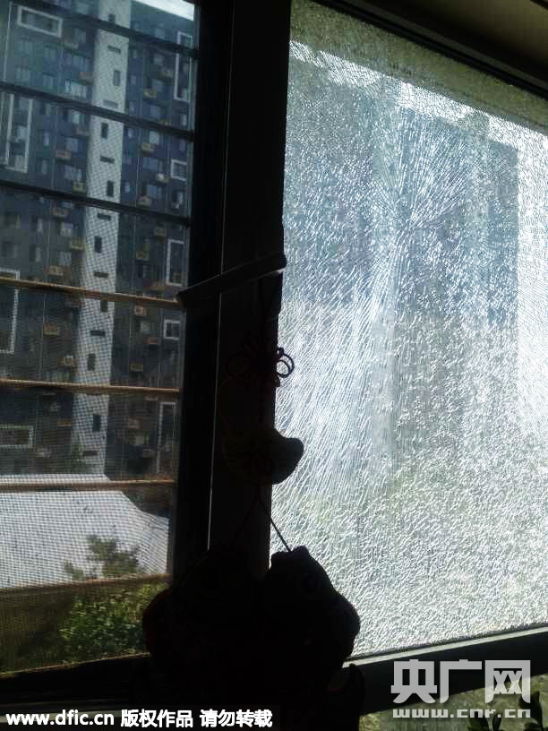 2015年7月13日,河北省秦皇岛市,高温致一家住户客厅玻璃爆裂,并不停的发出声响。