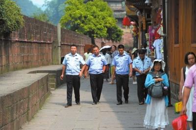 行政执法人员上街巡逻。