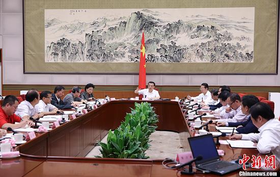 7月10日,中共中央政治局常委、国务院总理李克强主持召开座谈会,就当前经济形势和经济工作,听取专家和企业负责人的意见建议。中共中央政治局常委、国务院副总理张高丽出席。中新社发 刘震 摄