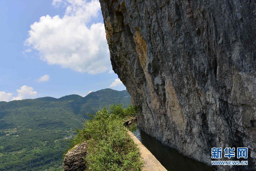这是7月13日在湖北省巴东县拍摄的“绝壁天河”。 在湖北西部深山海拔千米的悬崖峭壁之间,有一条人工开凿的水渠日夜流淌。这条犹如挂在绝壁上的“天河”,被人们称为鄂西深山中的“红旗渠”。这条人工开凿的灌渠位于恩施州巴东县清太坪镇至宜昌市长阳县之间,于20世纪60年代开始修建,历经10多年建设而成。水渠宽约2米宽,紧贴峭壁,依山就势,蜿蜒数十公里。目前,这条绝壁天河仍清流涓涓,水流不息,滋养着沿线的村落人家。新华社发(宋文 摄)图片来源:新华网