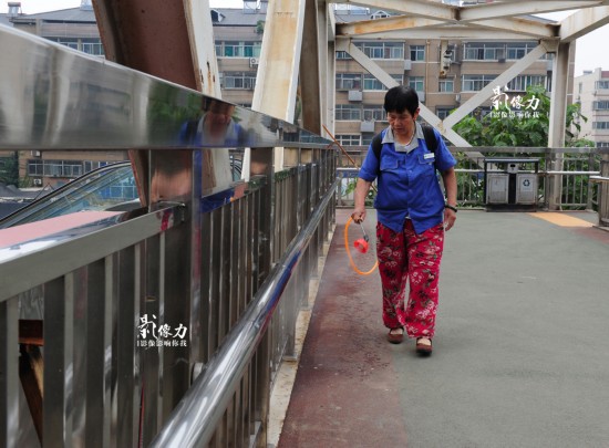 为了方便擦拭扶手,樊庆考夫妇专门自费购买了喷水壶,一边喷水一边擦拭。“以前我在前面喷水,他就在后面擦,很方便,也很快。”冀凤云告诉记者。(齐鲁网记者张伟 摄)