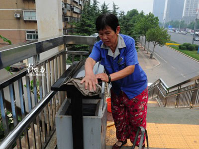 樊庆考告诉记者,他和妻子冀凤云从去年开始负责这座“过街天桥”上的卫生,一天打扫4遍,从未间断过。尽管气温高达三十五六度,冀凤云仍然冒着酷暑打扫卫生。