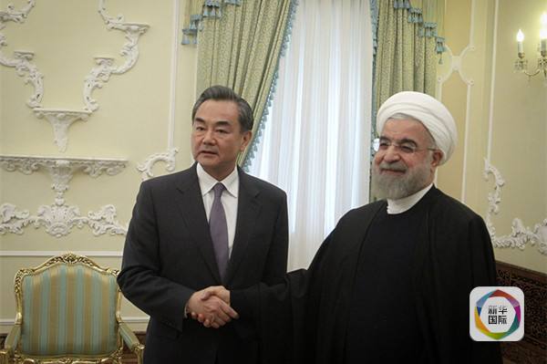 2015年2月15日,伊朗总统鲁哈尼(右)在德黑兰总统府会见中国外交部长王毅。 新华社发(艾哈迈德·哈拉比萨斯摄)