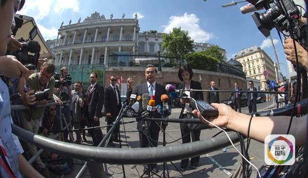 7月13日,在奥地利首都维也纳柯堡宫殿酒店,伊核问题六国外长与欧盟外交与安全政策高级代表莫盖里尼召开会议。 新华社记者钱一摄