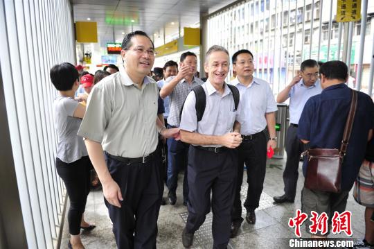 宜昌市长马旭明与亚洲开发银行东亚交通部部长泰瑞尔?邓肯试乘体验BRT 刘良伟 摄
