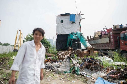 据该男子称,其原为住在此地的居民,三年前因不满当地拆迁方案,一直留守在此,占据工地一角。