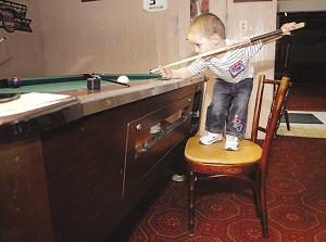 据美联社报道,美国纽约一名两岁幼童虽然站在椅子上才可以够到台球桌,却已是技艺不凡的台球高手,享有“台球神童”的美誉。