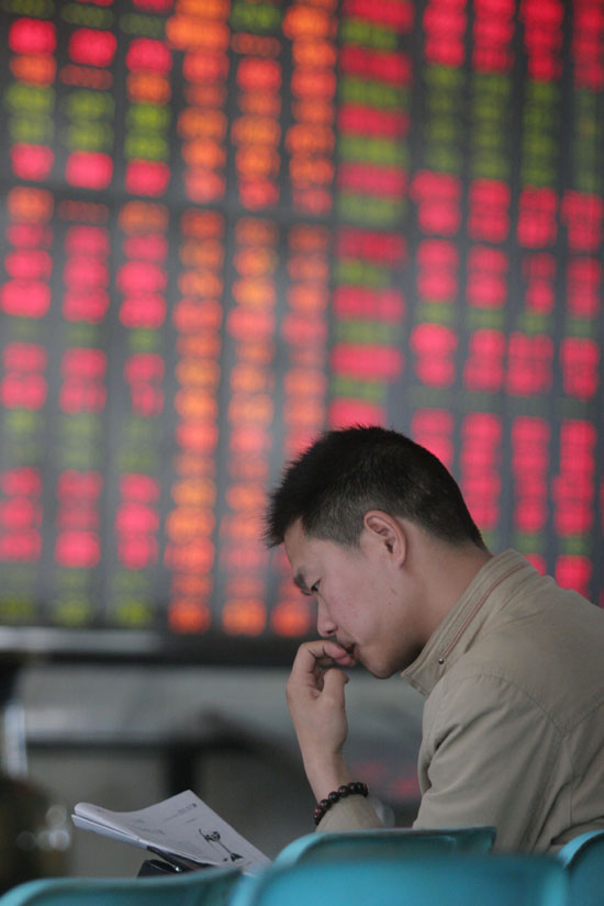 某证券营业厅里,一个年轻股民在琢磨大盘走势。 CFP供图
