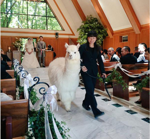 综合《精英日报》及BoredPanda的报道,日本一家酒店已将羊驼加入其豪华婚礼套餐——用神兽为在此办婚礼的新人“证婚”。