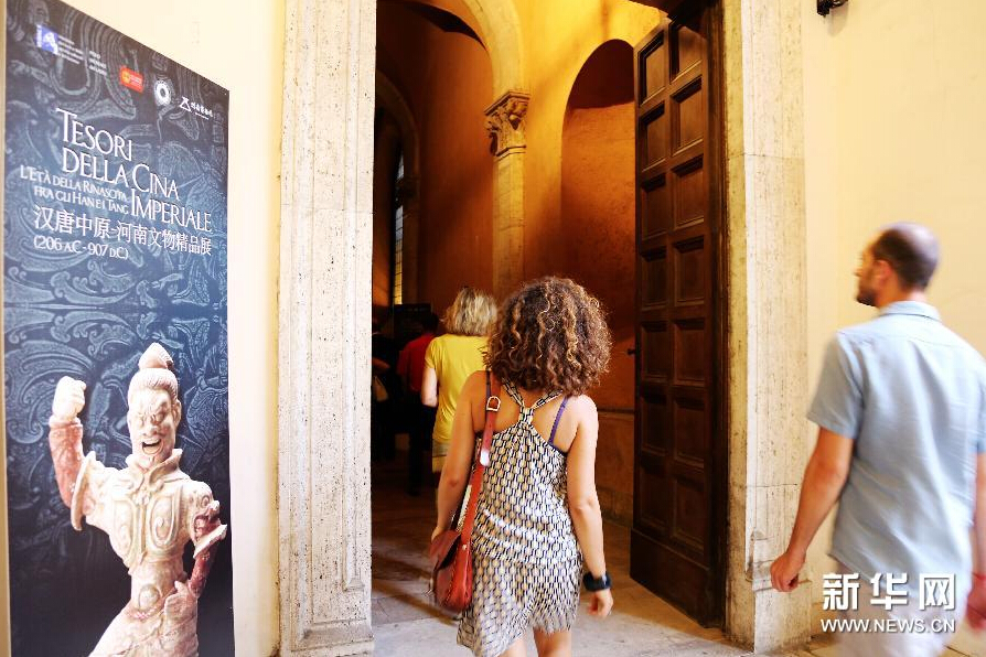 2015年7月16日在罗马威尼斯宫拉开帷幕,不仅为当地民众带来一场中原文化盛宴,也向中意建交45周年献礼。此次展览主题为“中国盛世的核心”,体现了汉唐盛世时期中国文明核心区域的都市风貌、社会生活、宗教文化与对外交流。新华社记者罗娜摄