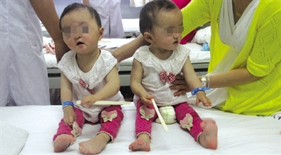 关键词:双胞胎女童患怪病 头颅畸形 手脚像鸭蹼