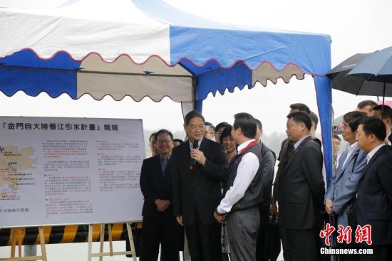 资料图:5月24日国台办主任张志军冒雨参访金门田埔水库。张志军在听完简报后说,实现大陆向金门供水是金门乡亲们想解决的一个重要问题。张志军当时表示,信在两岸共同努力下,两岸相关单位一定会精心推进这个工程,确保最后一里路能够如期走完,让金门乡亲尽早喝上甘美的大陆水。 中新社发 郑巧 摄