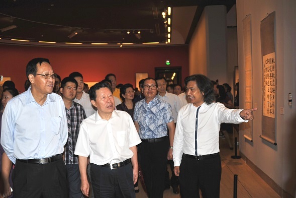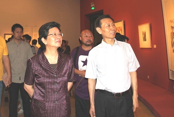 全国人大常委会副委员长、民盟中央主席张宝文,全国政协原副主席、中国文联主席孙家正参观美术作品展