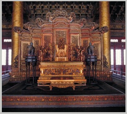 清代是中国最后一个封建王朝,帝王的权威可谓达到了极致,宫规森严,约束甚繁。其中雍正元年曾下谕诣:“朕见新进太监,不知规矩,扫地时,挟持笤帚,竟从宝座前昂然直走。尔等传于乾清宫等处首领太监等,嗣后,凡有宝座之处,行走经过,必存一番恭敬之心,急趋窜步方合礼节。”即是说,侍奉皇帝的大小太监,不仅要竭诚尽心效力主子,就是对主子坐过的宝座,亦必俯首躬身,急行而过,以示敬意,足以印证了宝座已成为帝王集权的形象图腾和体现皇帝权威的重要载体。