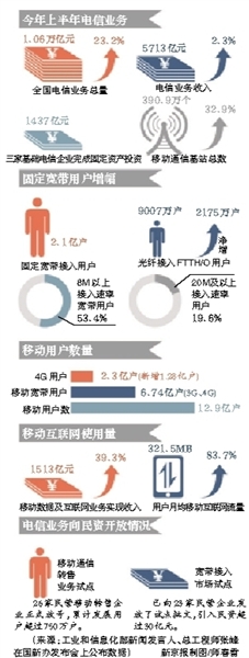 10月底前,约2000万使用铜线技术接入的固定宽带用户,将由4Mbps以下接入速率,免费提速至4Mbps,中国移动和中国联通也或将推出各自面向全国移动用户、每月50-60元包含2GB流量的资费套餐。