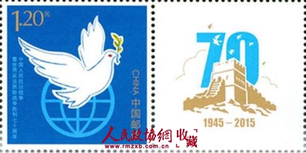 最新发行的中国人民抗日战争暨世界反法西斯战争胜利七十周年邮票。