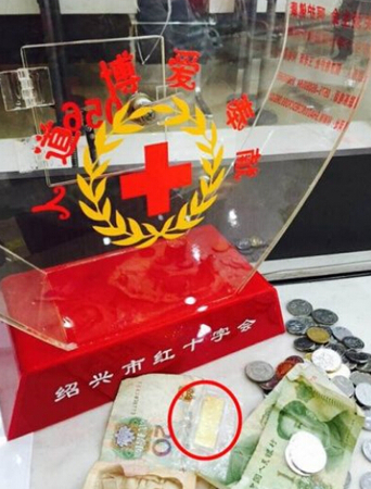 “绍兴设置爱心募捐箱8年多以来,从没遇到过有人往箱子里放金子的。”绍兴红十字会工作人员说。