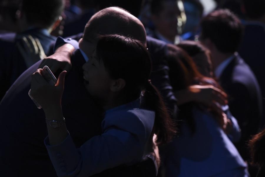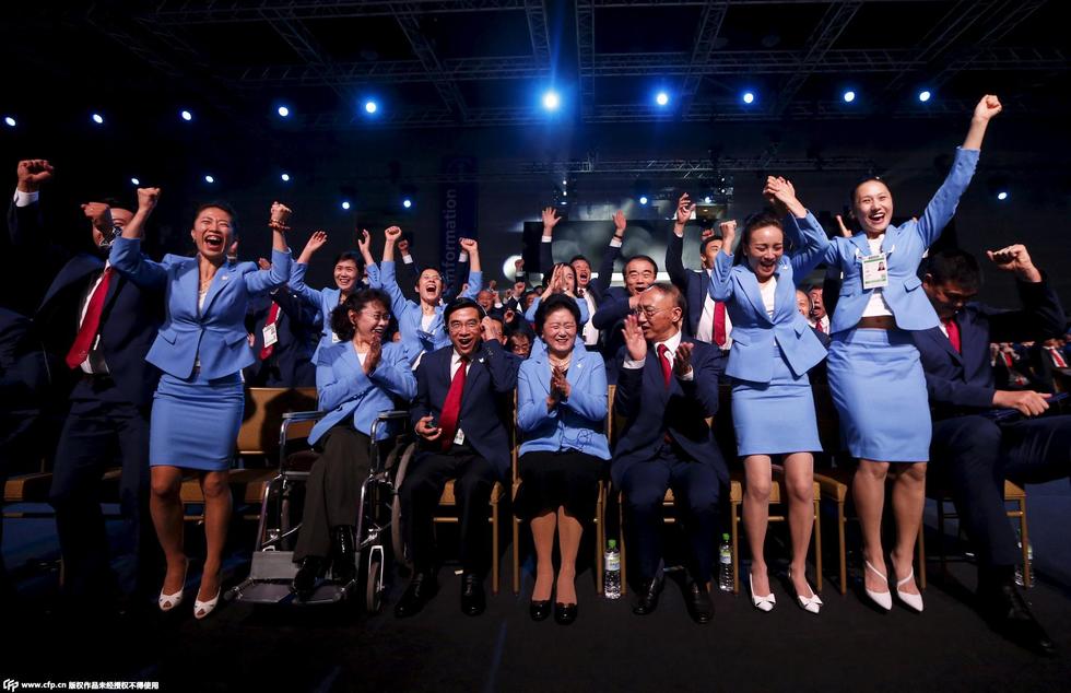 北京申冬奥代表团庆祝。