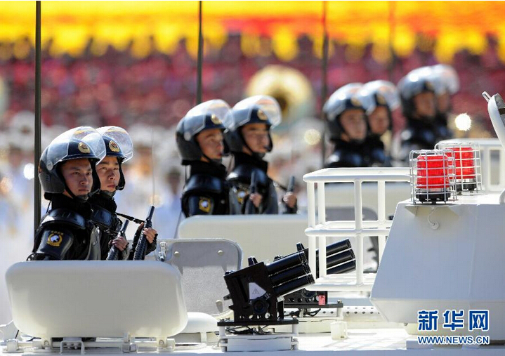 这是2009年国庆阅兵式上,武警装甲车方队通过天安门广场。 新华社记者罗晓光摄(资料照片)