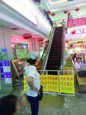 昨天下午5点30分左右,北京晨报记者赶到新东郊商城看到,夹人电梯位于一、二层之间,已经停止运行,上下电梯口处都被印有“维修保养 请勿靠近”的黄色牌子挡住,禁止顾客通行,几位维修人员以及商场人员正在电梯上查看。记者靠近观察,发现电梯中部靠下位置的左侧还遗留着一只紫色的洞洞鞋,被死死卡在梯级与围裙板之间,梯级和围裙板已经变形。记者还注意到,其余未发生事故的电梯也都停止了运行,顾客步行上下楼。而在电梯附近,随处可见各种安全提示,特别提醒儿童乘梯时要注意安全。
