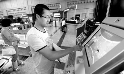 政策颁布后第一位市民在自助填写信息。京华时报记者陶冉摄