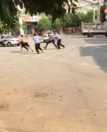 “当时所长手里拿的是警棍,那个男的冲过来,所长一棍子没有打中,棍子落在地上,结果他跳起来一刀砍中了所长。”目击者杨先生称,一名警察迅速拔枪,并两次鸣枪示警,“但是没有什么作用,那个人也没放下刀,第三枪才打中了他,好像击中了大腿”。