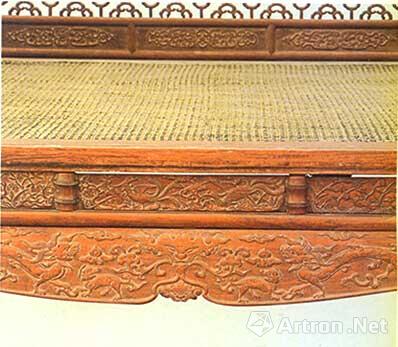 此床整体设计之独创、构件布局之合理、雕刻图案之丰富、线条密度和线条间的和谐度之高都堪称出类拔萃。螭龙螭凤或大螭小螭等形象无不生动,雕工技艺的高度成熟,制作难度极大。这潜在的巨大的社会必要劳动时间的花费远胜过诸多黄花梨罗汉床。
