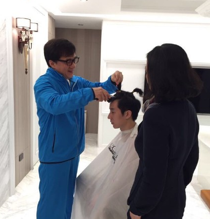 年初成龙为刚出狱的房祖名理发(资料图)