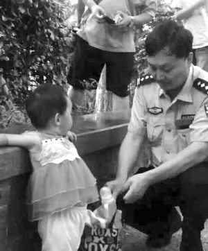 据民警介绍,孩子当时就站在玄武门入口附近的一个花坛边上。“孩子靠在花坛上,一直哭个不停。”据目击市民介绍,傍晚6点半左右,孩子的哭声引起了路人的注意。大家发现一名大约两岁的小女孩,正一个人站在岸边。