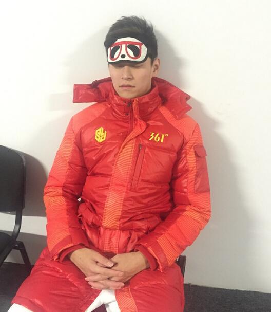 一日双赛对运动员的体力是巨大考验,保证午休很重要。没有时间返回村里小憩,孙杨因陋就简在赛场过道的一个角落铺上地垫,打起了地铺??ι轿扯雀叽?5度,日照时间长,孙杨为保证休息喜欢戴眼罩,这一天就再次派上了用场。