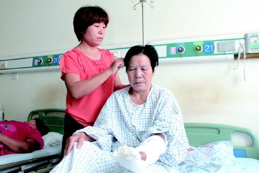 4日上午,记者来到济宁市第一人民医院急诊科病房,见到了陈淑清老人。她的左手缠着厚厚的绷带,护士问疼不疼,她说:“没有一点疼痛感,只觉得麻木。”