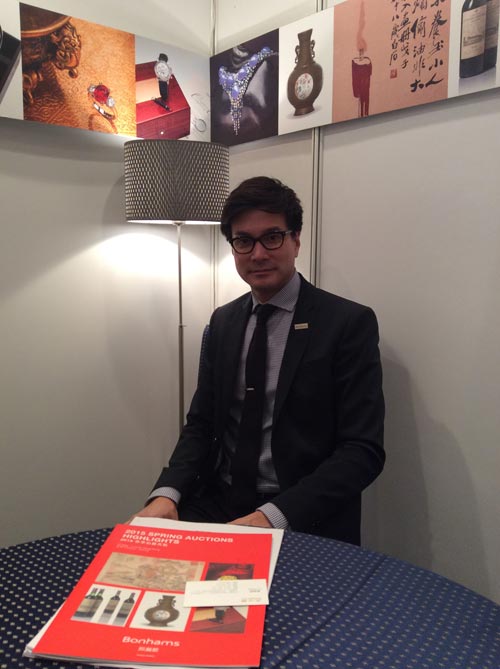 冯汉剑:2007年邦瀚斯在香港成立分公司,并进行了第一次拍卖。香港是整个亚洲的总部。目前我们在北京、东京、新加坡、台北都有办公室,希望为亚洲客户提供高品质的服务。去年5月,邦瀚斯在香港开设了一个艺廊,拍卖以及预展都在里面举行。中国艺术品市场非?;钤荆唤鍪谴车闹泄榛?、瓷器、古董,还有当代艺术、手表、珠宝、红酒等都在中国市场有很大的发展空间。2010年起,邦瀚斯就开始在北京和上海做预展。主要的拍卖是一年春秋两季在香港举行,但在这之前,我们会把拍品先带去北京和上海展出,希望有更多内地的艺术收藏家对我们的拍品感兴趣。