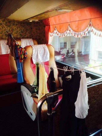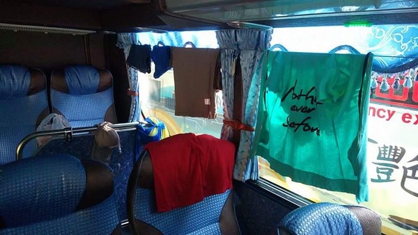 大陆还自备晒衣绳夹,俨然把整个游览车当成自己的晒衣场。(资料图片:台湾东森新闻网)