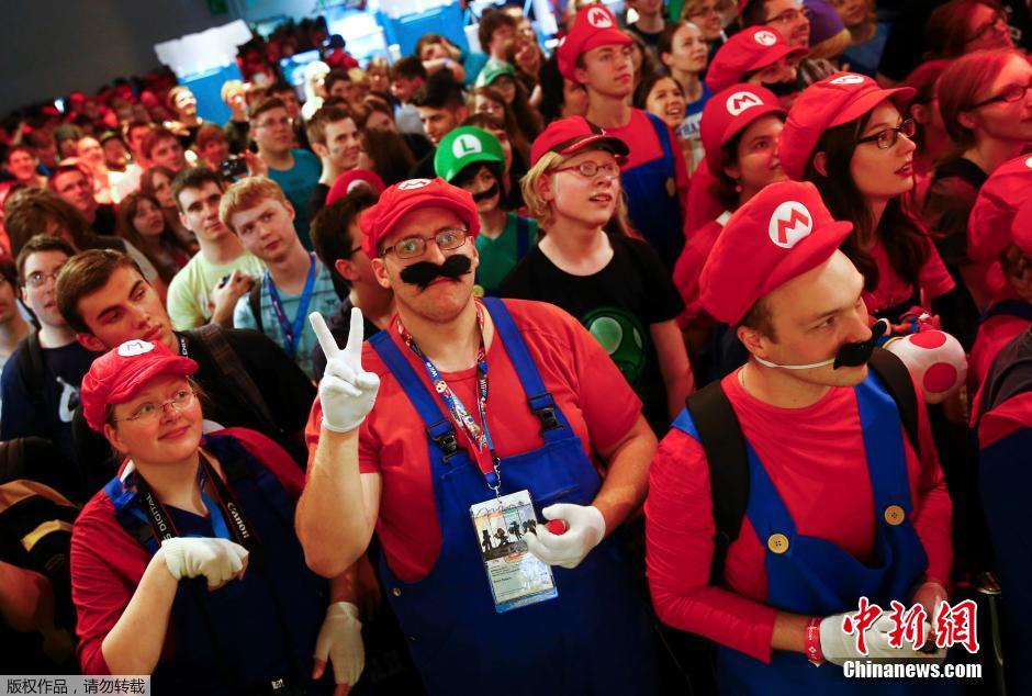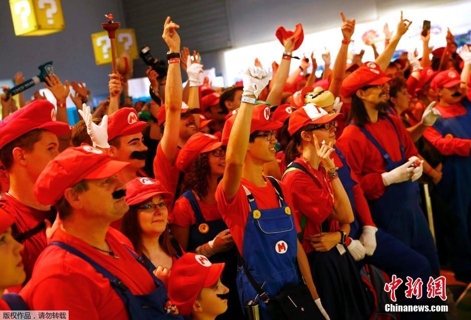 当地时间8月6日,德国,2015科隆游戏展上,大批玩家集体扮演成游戏《超级玛丽》中的马利奥兄弟,以纪念该游戏诞生30周年。