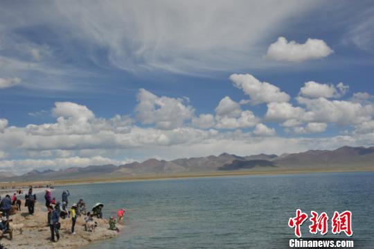 7月,随着西藏旅游升温,有着“天湖”之称的纳木错湖也迎来了旅游旺季。图为纳木错湖?!≈行峦钦?马学玲 摄