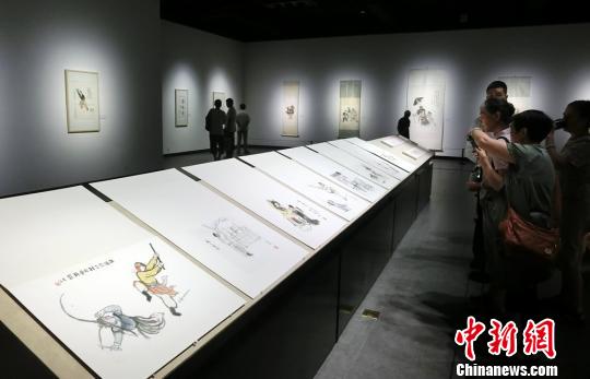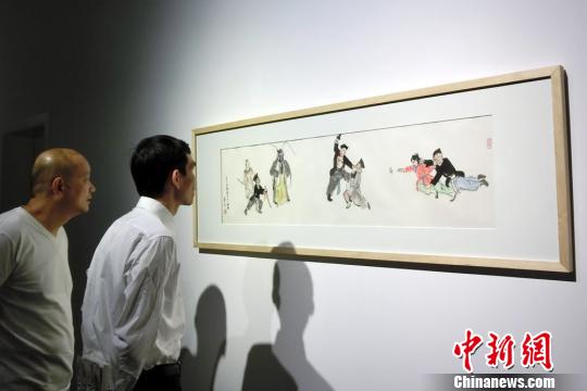 记者在现场看到,展览以戏剧题材绘画作品为主,《霸王别姬》、《孙悟空三打白骨精》、《贵妃醉酒》、《武二设祭》、《红梅阁》等故事纷纷跃于纸上,其人物角色经关良的画笔“夸张、变形”之后更为传神,尤其是人物眼神刻画最见功力,参观者可从中细细品味画家寥寥数笔勾勒的昂然情趣。