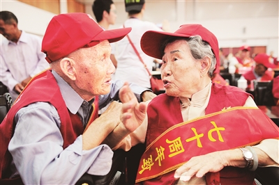 8月8日,湖南浏阳,来自台湾高雄的91岁抗战老兵柳庆禧见到自己的战友后,激动地说不出话来。当天,“乡望·湘聚·相守——牵手浏阳籍抗战老兵纪念中国人民抗日战争胜利70周年”活动在湖南浏阳举行,包含柳庆禧在在内的两岸41名抗战老兵齐聚一堂,再次吹响了老兵集结号。