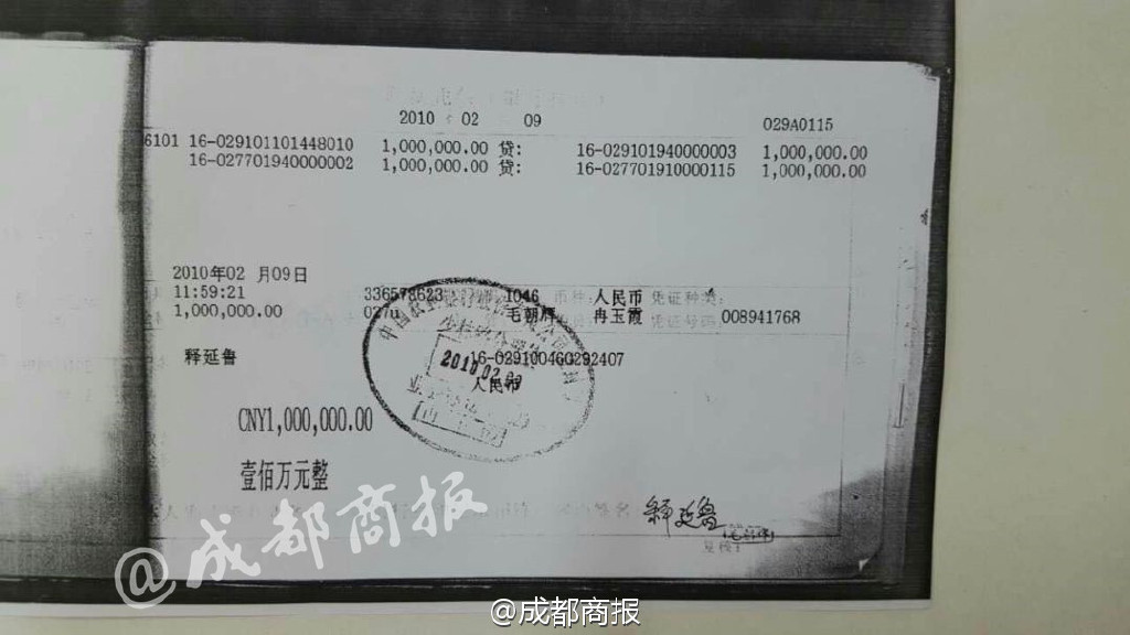 举报团还向成都商报记者首次提供了有释永信名字的银行交易凭证等证据,释延鲁称释永信向他个人索取财物就高达700余万。