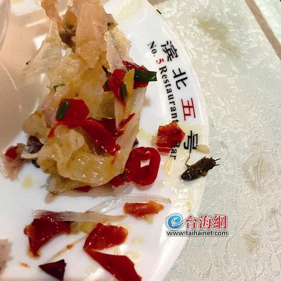 女子约好友聚餐吃出蟑螂 服务员竟称“请理解”