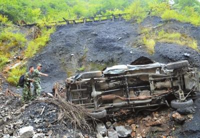 记者了解到,事故发生后最先报警的是一位皮卡车司机,事发时他正驾车逃生,虽然已经驶离滑坡地带一段距离,但他的皮卡车仍旧被滑坡造成的冲击波冲离路面20余米,车辆也在遭受冲击后严重变形。
