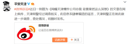 原标题:天津网警辟谣“网曝天津爆炸公司总裁背景深厚”