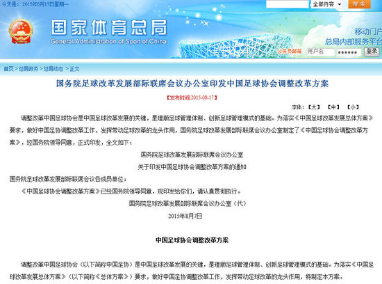 截图来自于体育总局。