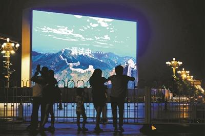 本报讯(记者 王薇)昨晚,矗立在天安门广场东西侧路的LED大屏幕,在经过紧张的施工后,开始进行亮屏调试。