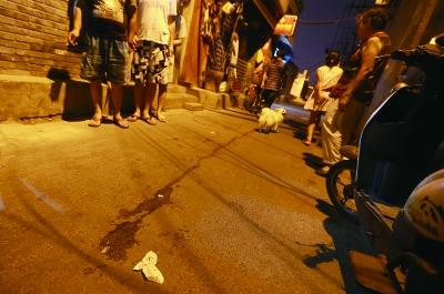 昨晚,鹞儿胡同的地上还残留着一道血迹 摄/记者 吴海浪
