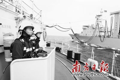 16日凌晨3时,中方编队正在如墨海面上悄然前行。